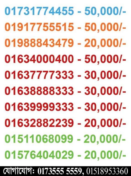 বর্ননা:ভিআইপি সিম নাম্বার হচ্ছে সহজে মনে রাখার মতো প্রিমিয়াম মোবাইল নাম্বার। ব্যবসা ও ব্যক্তিগত ব্যবহারের জন্য ভিআইপি নাম্বার জনপ্রিয়। বাংলাদেশের ভিআইপি সিম নাম্বার কিনতে চাইলে আমাদের কাছ থেকে আকর্ষণীয় ও ইউনিক নাম্বার বেছে নিন।ব্যবসায়িক ক্ষেত্রে ভিআইপি সিম নাম্বারের গুরুত্ব অনেক বেশি। একটি সহজ ও আকর্ষণীয় মোবাইল নাম্বার গ্রাহকদের দ্রুত মনে থাকে, ফলে ব্র্যান্ডিং ও মার্কেটিংয়ে সুবিধা হয়। দোকান, অনলাইন ব্যবসা, কর্পোরেট অফিস, রেস্টুরেন্ট বা সার্ভিস সেন্টারের জন্য একটি প্রিমিয়াম নাম্বার প্রতিষ্ঠানের পেশাদার ইমেজ তৈরি করে। অনেক উদ্যোক্তা তাদের ব্যবসার পরিচিতি বাড়াতে ভিআইপি নাম্বার ব্যবহার করেন।ব্যক্তিগত ব্যবহারেও ভিআইপি সিম নাম্বারের চাহিদা রয়েছে। অনেকে সামাজিক মর্যাদা বা ব্যক্তিগত পছন্দের কারণে বিশেষ ডিজিটের নাম্বার সংগ্রহ করেন। দাম সাধারণ নাম্বারের তুলনায় কিছুটা বেশি হলেও এর বিশেষত্ব ও আকর্ষণের কারণে অনেকেই এটি বেছে নেন। সহজে মনে রাখার সুবিধা, আকর্ষণীয় ডিজিট প্যাটার্ন এবং ব্র্যান্ড ভ্যালু বৃদ্ধির কারণে ভিআইপি সিম নাম্বার এখন ব্যক্তিগত ও ব্যবসায়িক উভয় ক্ষেত্রেই একটি জনপ্রিয় পছন্দ।দামVIP SIM GRAMEEN, GP, AIRTEL, BANGLALINK SELLGrameen Phone (GP)✅ 01731774455 → 50,000/-✅ 01715993281 → 10,000/-✅ 01718848199 → 10,000/-Banglalink✅ 01917755515 → 50,000/-✅ 01988843479 → 20,000/-Airtel✅ 01634000400 → 50,000/-✅ 01637777333 → 30,000/-✅ 01638888333 → 30,000/-✅ 01639999333 → 30,000/-✅ 01632882239 → 20,000/-Teletalk✅ 01511068099 → 20,000/-✅ 01576404029 → 20,000/-✅ 01585519166 → 20,000/-✅ grameen vip sim and bangla link vip sim. #sell gp sim #sellvipsim #vip sim sell #mill number✅ যোগাযোগ: 01518953360, 0173555 5559এখানের এই নাম্বারগুলিই আছে যদি কারো দরকার হয়, আমাদের সাথে যোগাযোগ করে নিতে পারবেন। অনলাইনে পেমেন্ট করতে পারেন অথবা সরাসরি যোগাযোগ করেও পেমেন্ট করতে পারবেন। একটি পাসপোর্ট সাইজ ছবি এবং জাতীয় পরিচয়পত্র নিয়ে আমাদের কাছে আসতে হবে কাস্টমার কেয়ার থেকে মালিকানা পরিবর্তন করে দেয়া হবে।VIP Number Bangladesh, Fancy VIP SIM BD, Premium VIP Number BD, Buy VIP Mobile Number Bangladesh, VIP SIM Card BD, Exclusive VIP SIM Bangladesh, High Class Mobile Number BD, Luxury VIP SIM BD, Royal VIP Number Bangladesh, Super VIP SIM BD, Smart VIP Number BD, Attractive VIP Number Bangladesh, Best Fancy Mobile Number BD, Buy Premium SIM Bangladesh, VIP SIM Online Order BD, Special VIP Contact Number BD, Elite VIP Mobile Number BD, VIP SIM Number Price Bangladesh, Fancy Number Price BD, Premium Number Offer BD, VIP SIM Discount Bangladesh, Limited Edition VIP SIM BD, Rare VIP Number BD, Unique Fancy Number Bangladesh, Number Pattern Bangladesh, Repeated Digit VIP Number BD, Double Triple Digit SIM BD, Serial Digit SIM BD, Mirror Digit VIP SIM BD, ABCD Pattern SIM BD, XYZ Pattern SIM BD, 1122 SIM Number BD, 3344 SIM Number BD, 5566 SIM Number BD, 7788 SIM Number BD, 9898 SIM Number BD, 6767 SIM Number BD, 4545 SIM Number BD, 2323 SIM Number BD, 9090 SIM Number BD, 8080 SIM Number BD, 3030 SIM Number BD, 4040 SIM Number BD, 5050 SIM Number BD, VIP Number Resale BD, VIP SIM Exchange BD, Premium SIM Upgrade BD, Easy Digit VIP SIM BD, Custom Choice SIM BD, Pick Your VIP Number BD, Favorite Number SIM BD, Dream Number SIM BD, Lucky Digit SIM BD, Islamic Lucky Number SIM BD, Business Lucky SIM BD, Corporate Identity SIM BD, Brand Identity SIM BD, VIP Contact for Business BD, High Profile Contact BD, Exclusive Business Number BD, Executive SIM Number BD, CEO VIP Number BD, Entrepreneur VIP SIM BD, Influencer VIP Number BD, Public Figure SIM BD, Media VIP Number BD, VIP Number Registration BD, NID Registered VIP SIM BD, Ready SIM VIP BD, Activated VIP SIM BD, Fresh VIP SIM BD, New Series VIP SIM BD, Smart User SIM BD, Digital Identity SIM BD, Online VIP SIM Marketplace BD, Best Fancy Digit BD, Hot Selling VIP SIM BD, Top Rated Fancy SIM BD, VIP SIM Review BD, VIP SIM Customer Feedback BD, Secure S